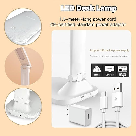 Led Desk Lamp Dimmable Desk Light Reading Lamp 3 Lighting Modes, Eye Protection Lamp Desk Accessories, Study Desk Lamp Equipped USB Charger Suitable for Home Office is for Gift Giving